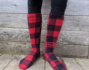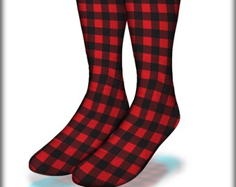 Red And Black Buffalo Plaid Socks By Socksbysbd Redbubble
