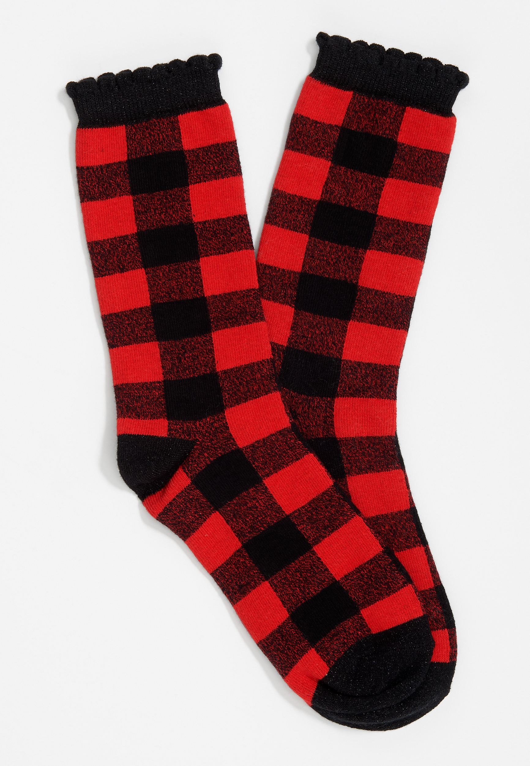 Red Buffalo Plaid Metallic Trim Crew Sock Maurices